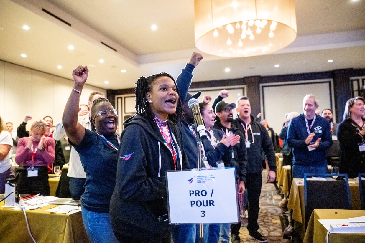 Nos succès ont été rendus possibles grâce à la solidarité de nos personnes membres – des dizaines de milliers de personnes travailleuses réparties dans tout le pays. Nous avons défendu nos personnes membres à la table de négociations et, lorsque c’était nécessaire, nos personnes membres se sont mobilisées et sont descendues dans la rue pour défendre leurs droits, non seulement pour elles-mêmes et leurs collègues, mais aussi pour le mouvement syndical et nos communautés à travers le pays.